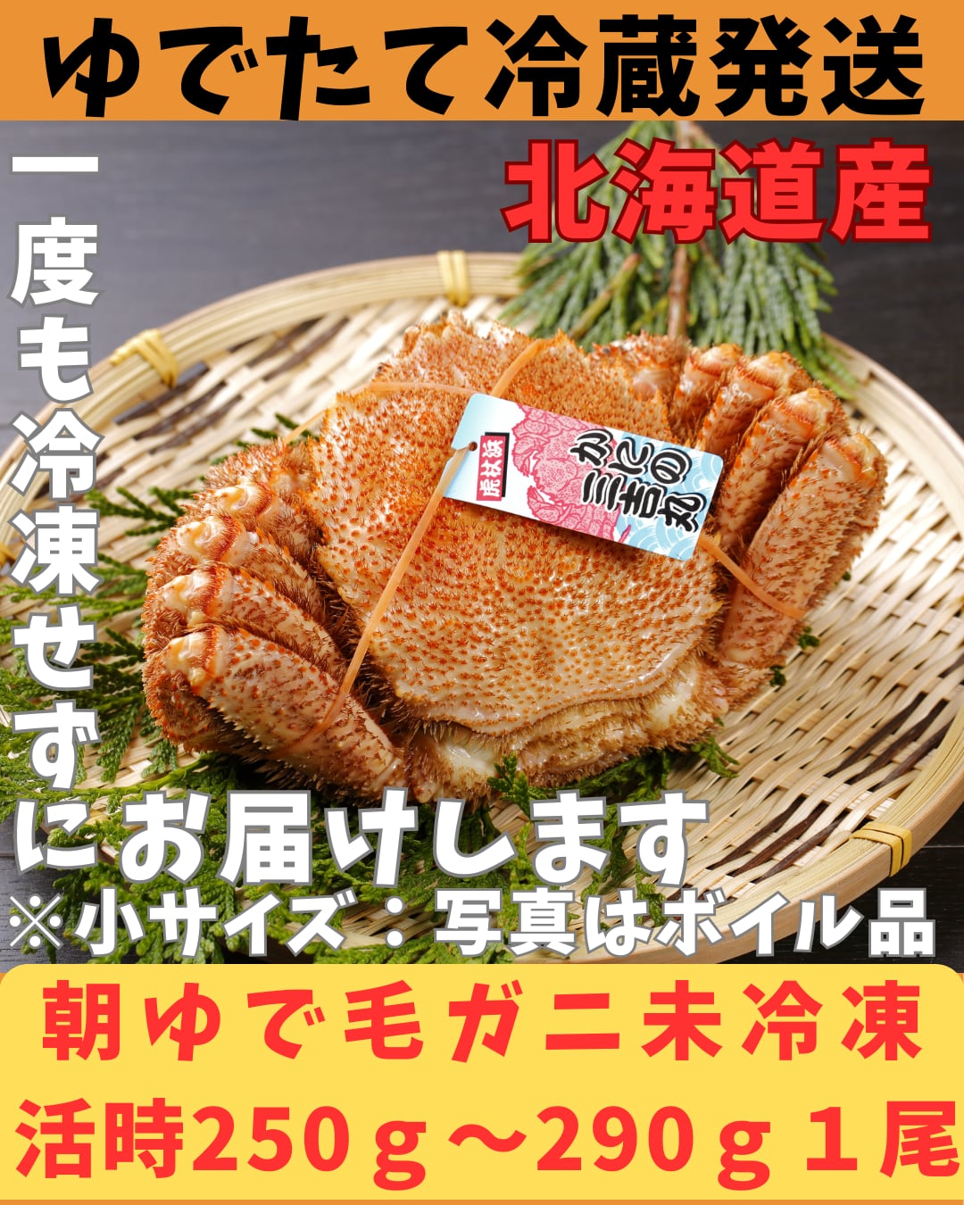 朝ゆでボイル毛ガニ活時250-290g前後1尾 :ボイル時220g〜260g前後でお届け