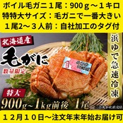 ボイル毛ガニ 900g〜1キロ前後 冷凍 北海道産