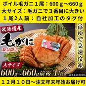 【原材料名】毛ガニ ボイル時計量600g~660g前後