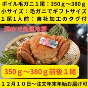 【原材料名】毛ガニ ボイル時計量350g~380g前後