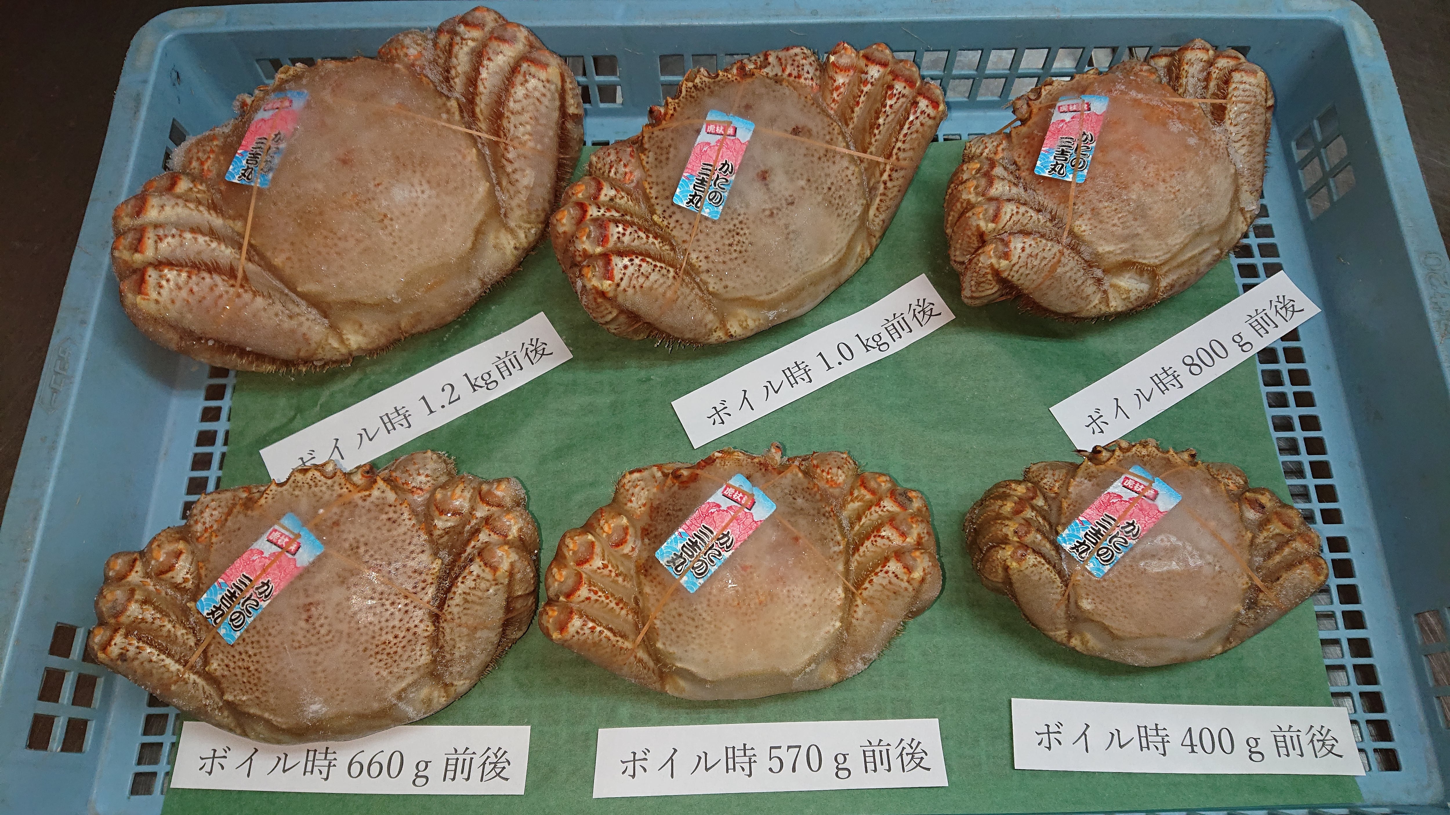 ※毛ガニは甲羅の重さを含んだ全体の重さの表記となります。