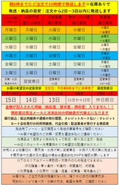 ① 着日指定不可です午前10時までの注文で当日または翌日の15時便で発送、