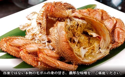 冷凍ではない本物の毛ガニの身の甘さ、濃厚な味噌を、