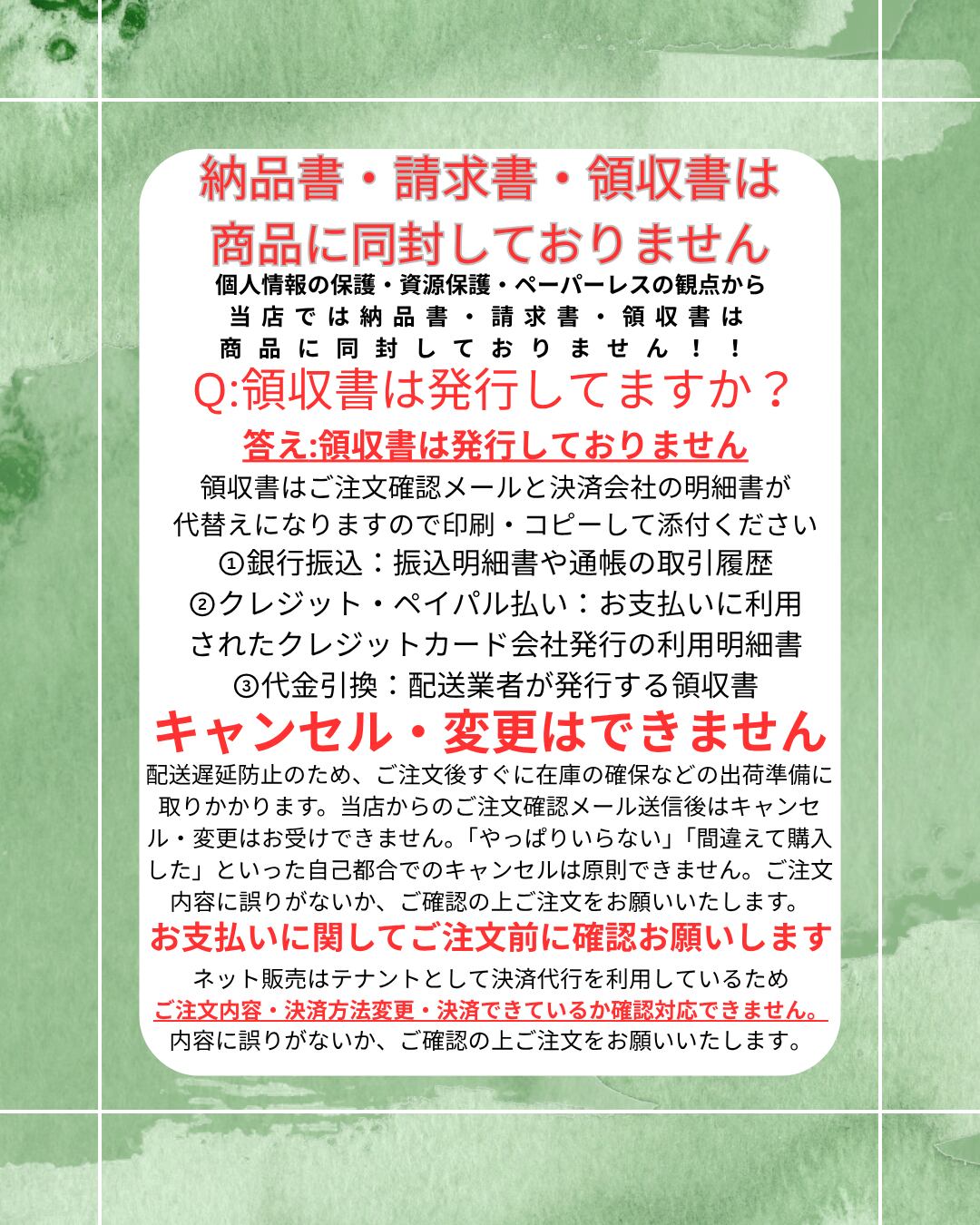 休日:日曜日・祝日は注文受けのみで在庫分承ります。発送は翌営業日になります。
