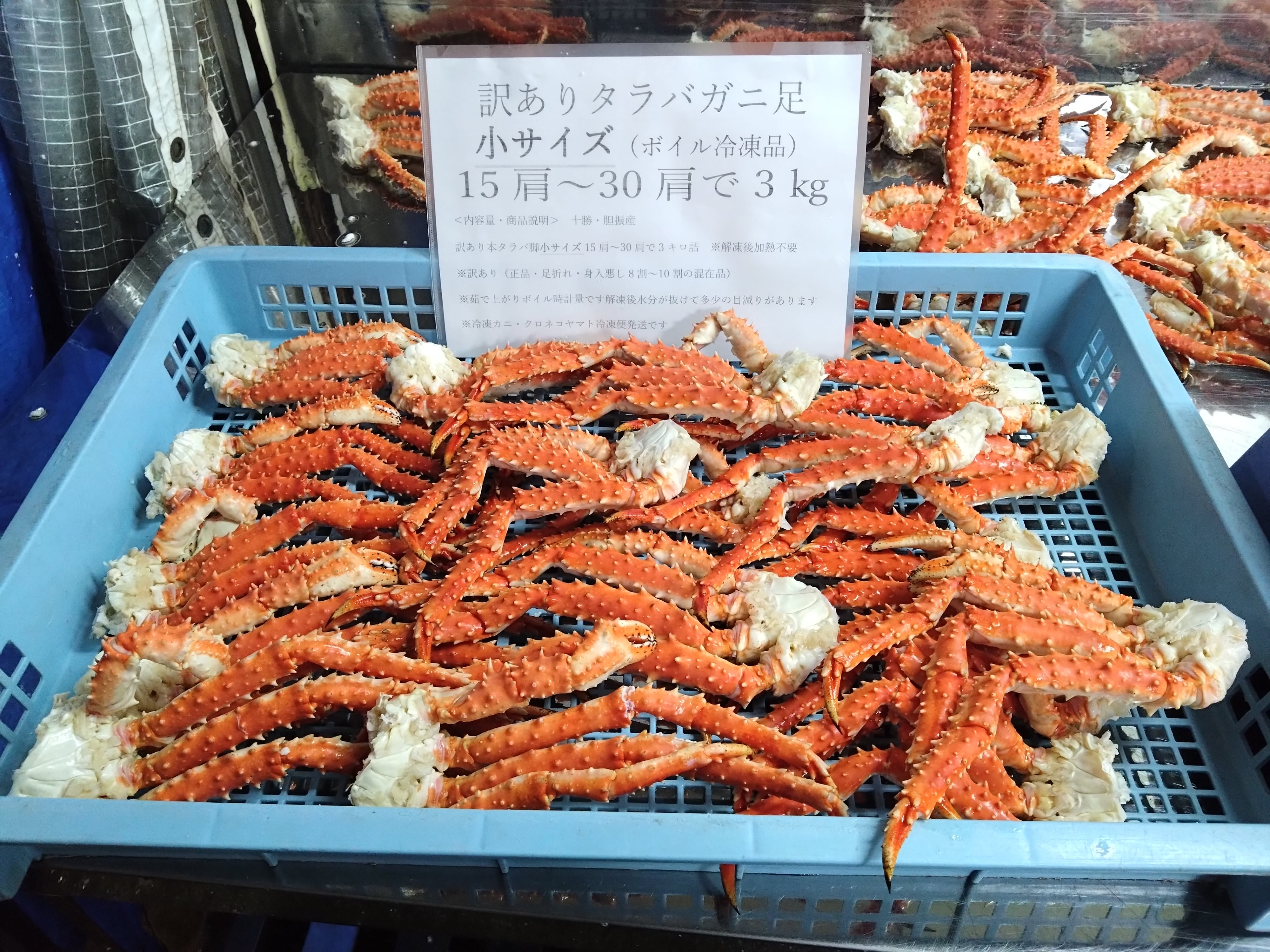 タラバガニ足:十勝広尾産 250〜100g小サイズのタラバガニ足を12肩〜30肩で3㎏に箱詰めしました