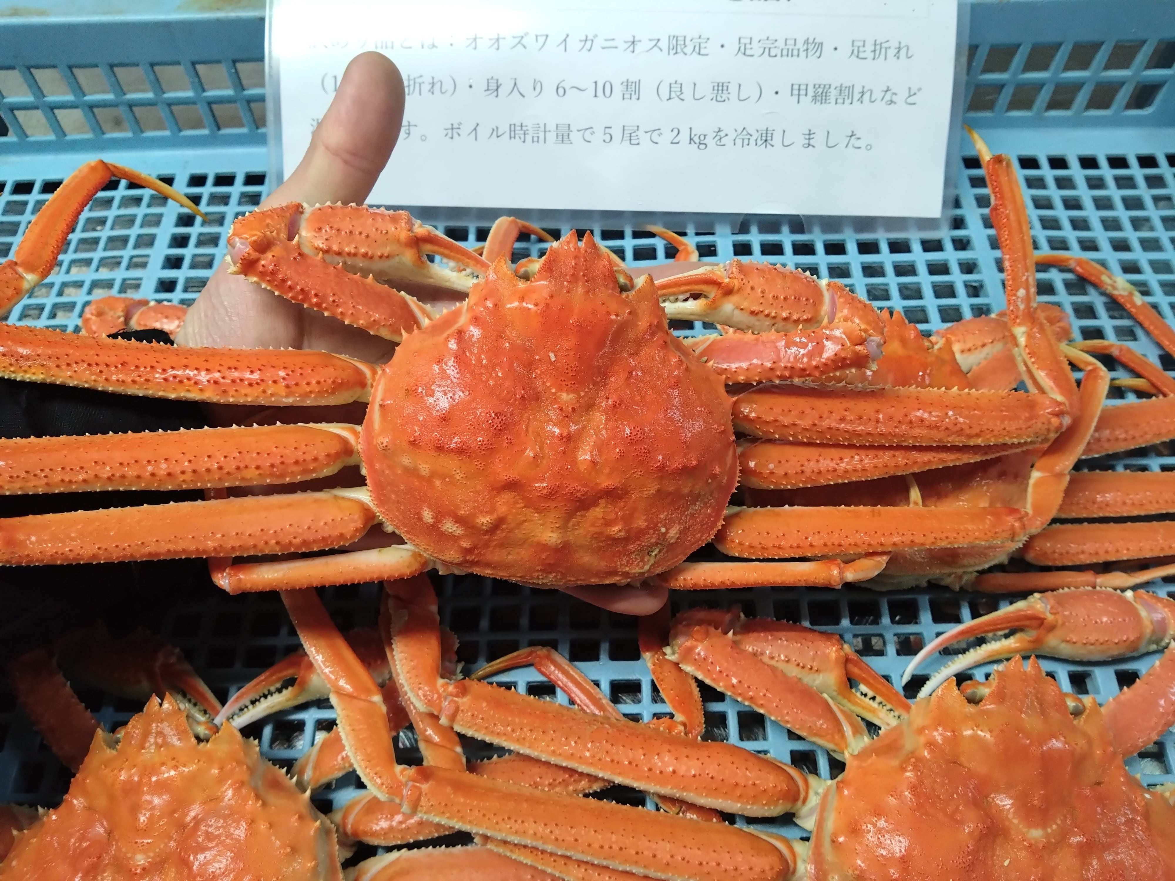 ※オオズワイガニ訳あり品です:ボイル済、身入りは6〜10割がオスのみ・足折れ混在の訳あり品です。