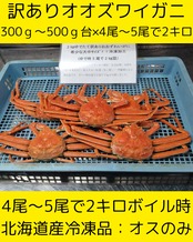 訳ありおおずわい4尾から5尾入で2.0キロボイル時計量 冷凍便発送です。